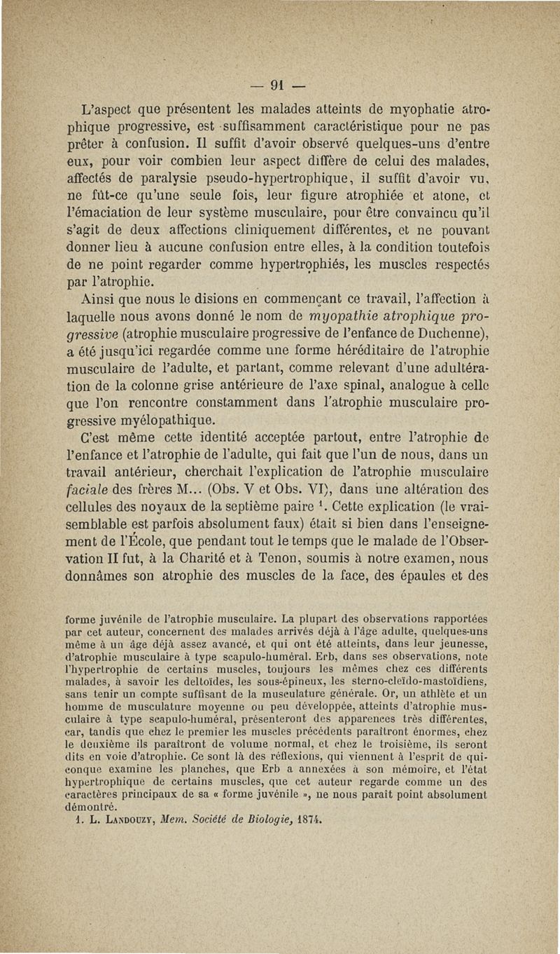 De la myopathie atrophique progressive : myopathie héréditaire, sans neuropathie, débutant d'ordinaire dans l'enfance, par la face