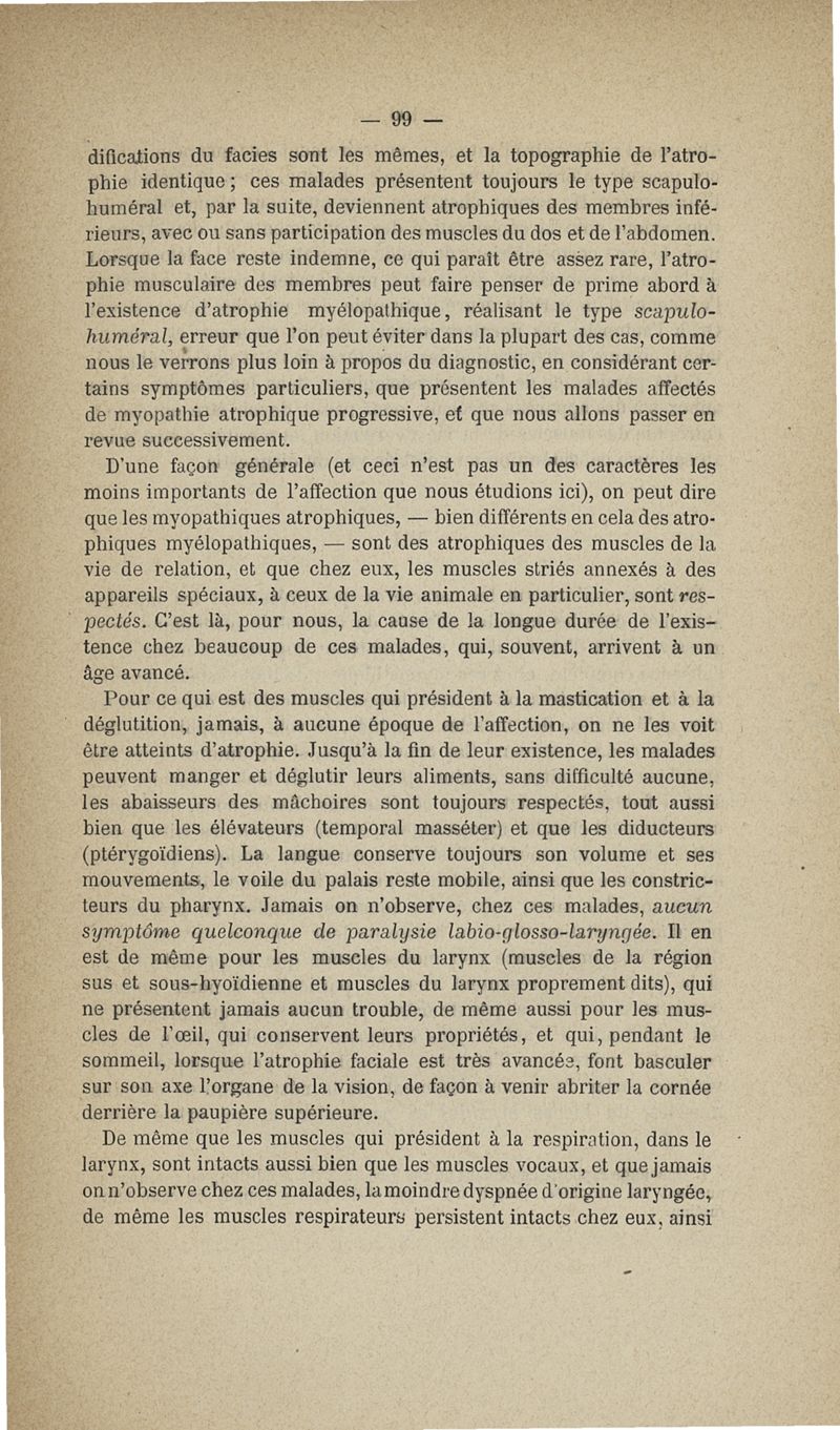 De la myopathie atrophique progressive : myopathie héréditaire, sans neuropathie, débutant d'ordinaire dans l'enfance, par la face
