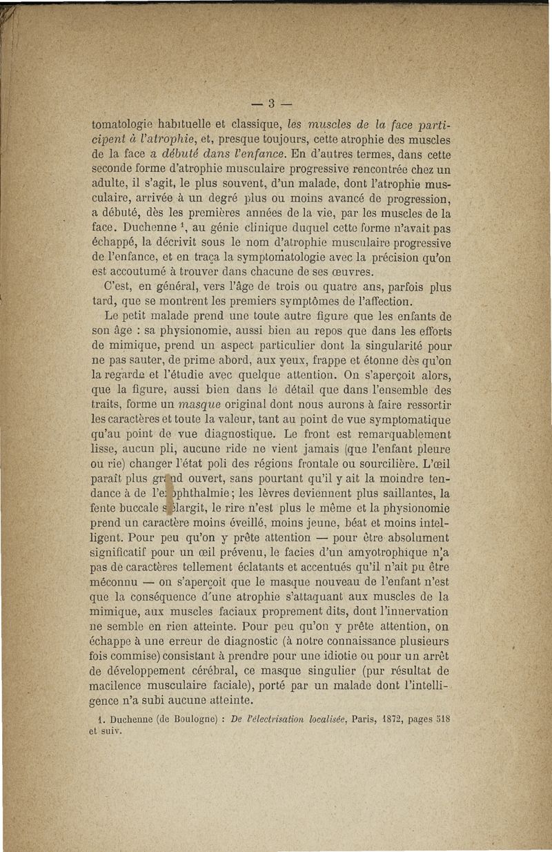 De la myopathie atrophique progressive : myopathie héréditaire, sans neuropathie, débutant d'ordinaire dans l'enfance, par la face