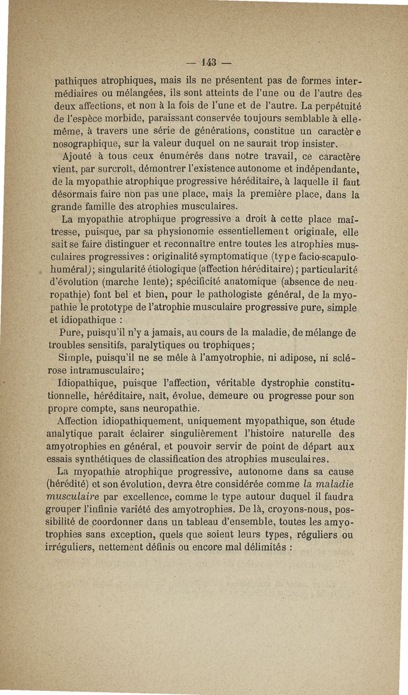 De la myopathie atrophique progressive : myopathie héréditaire, sans neuropathie, débutant d'ordinaire dans l'enfance, par la face