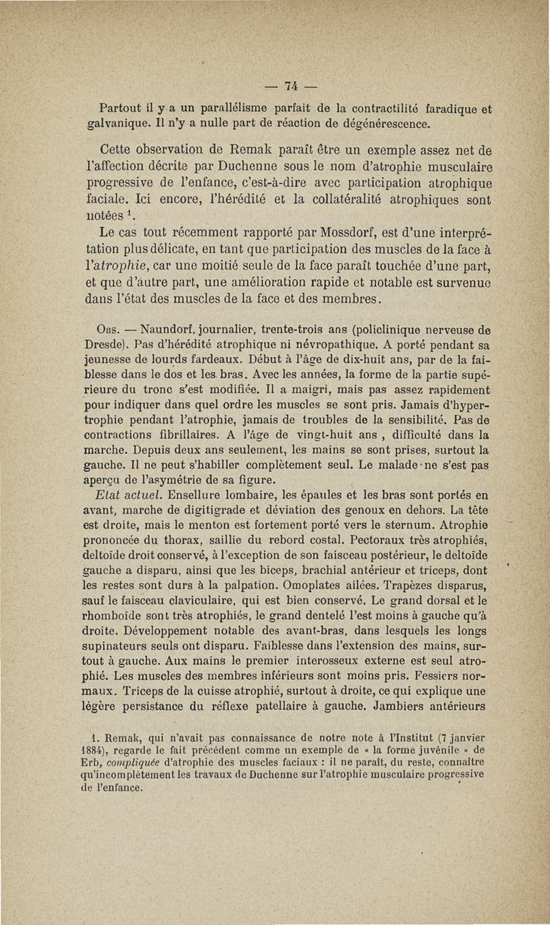 De la myopathie atrophique progressive : myopathie héréditaire, sans neuropathie, débutant d'ordinaire dans l'enfance, par la face