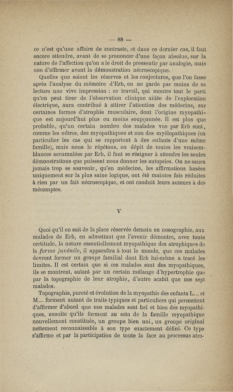 De la myopathie atrophique progressive : myopathie héréditaire, sans neuropathie, débutant d'ordinaire dans l'enfance, par la face