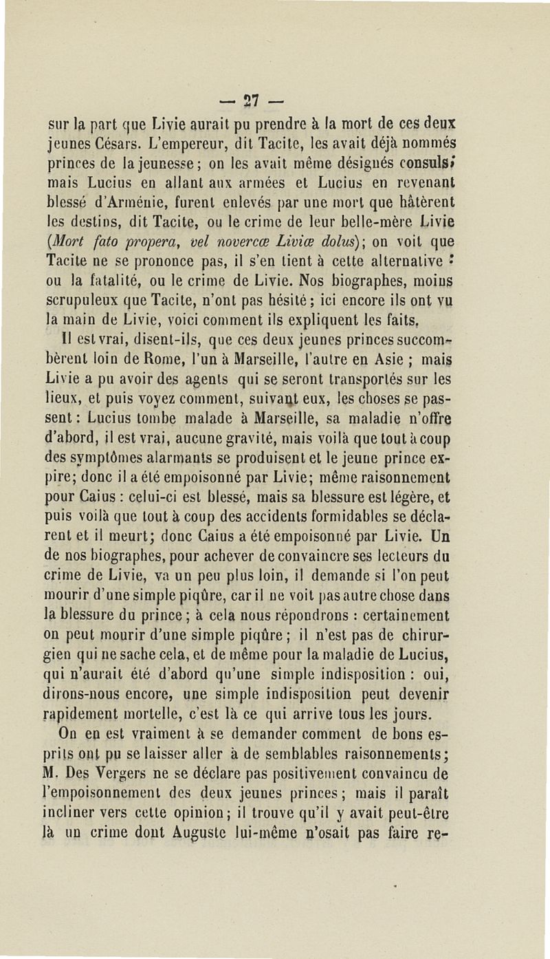 Recherches historiques sur la vie privée de l'Empereur Auguste, sur ses maladies, ses infirmités et son genre de mort -- d'Amiens E. Frédéric Dubois