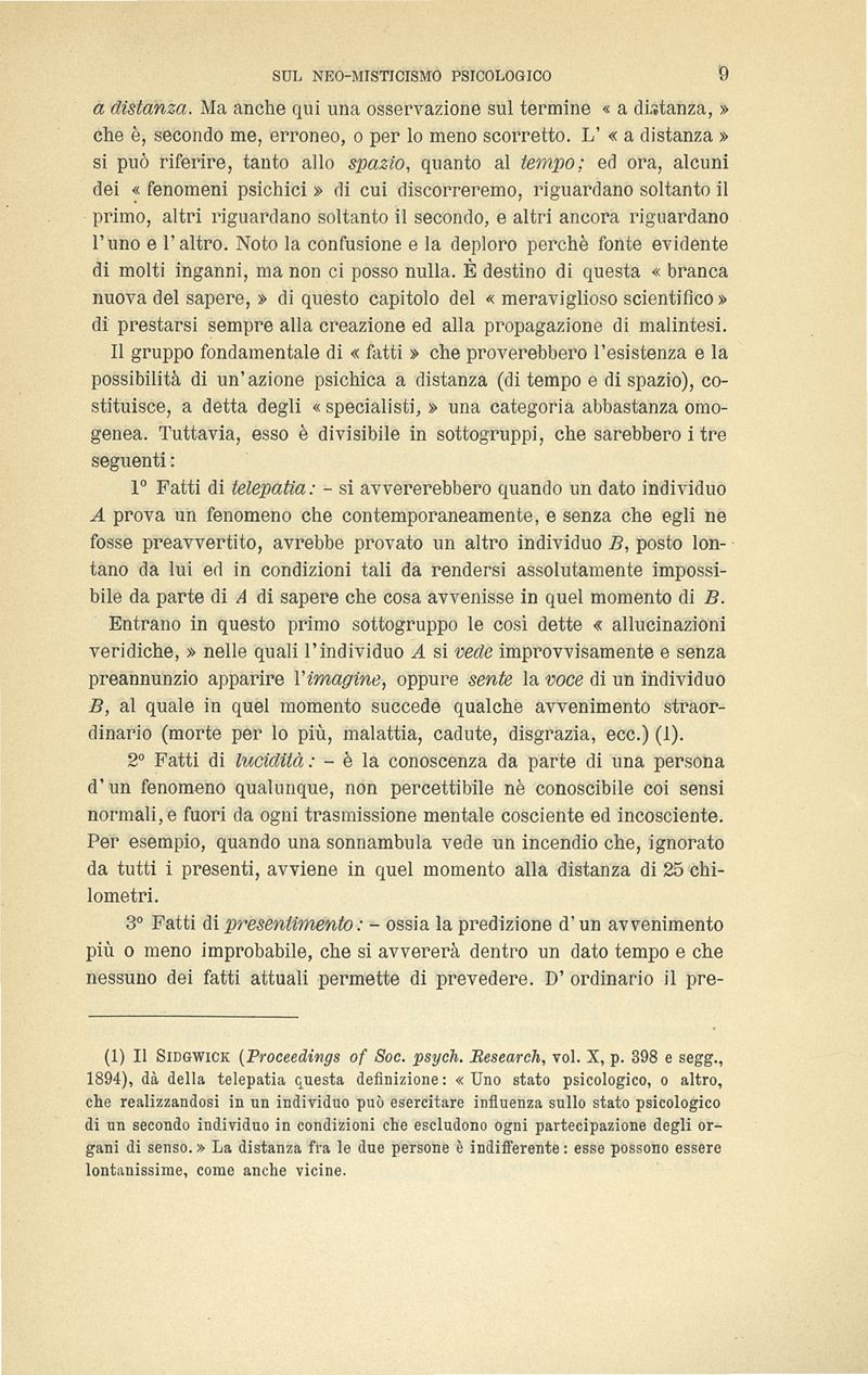 I fenomeni telepatici e le allucinazioni veridiche : osservazioni critiche sul neo-misticismo psicologico