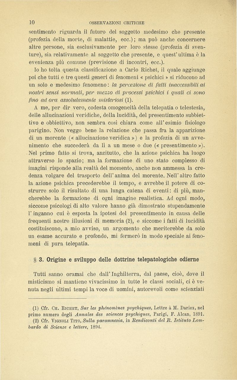 I fenomeni telepatici e le allucinazioni veridiche : osservazioni critiche sul neo-misticismo psicologico