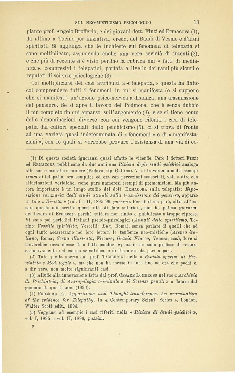 I fenomeni telepatici e le allucinazioni veridiche : osservazioni critiche sul neo-misticismo psicologico