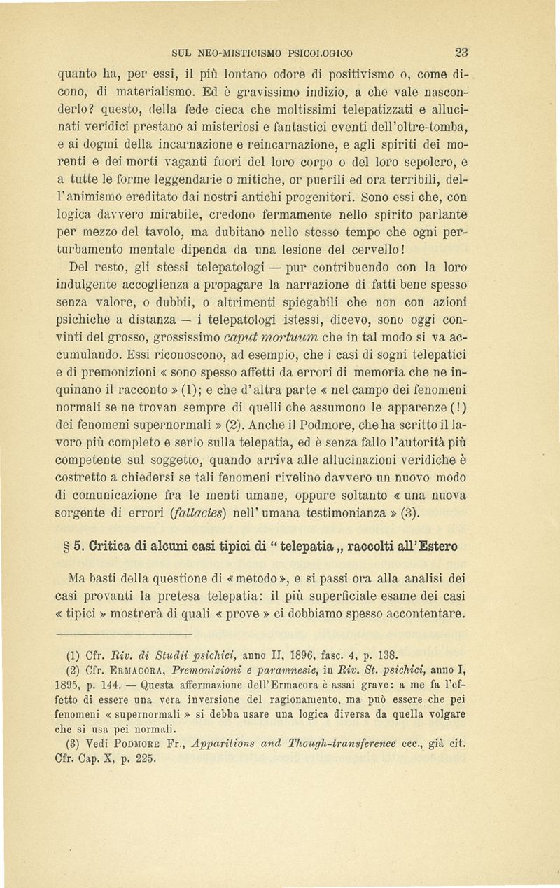 I fenomeni telepatici e le allucinazioni veridiche : osservazioni critiche sul neo-misticismo psicologico