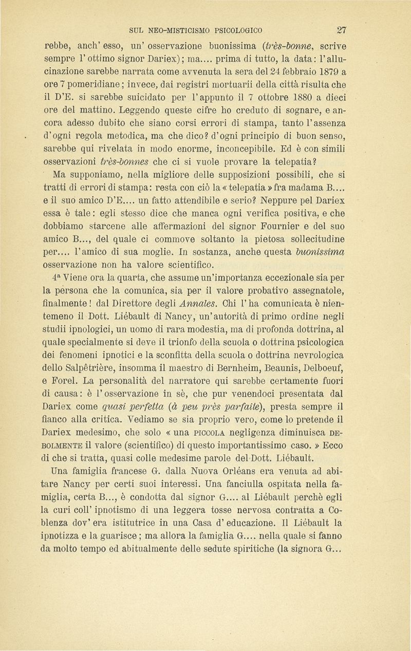 I fenomeni telepatici e le allucinazioni veridiche : osservazioni critiche sul neo-misticismo psicologico