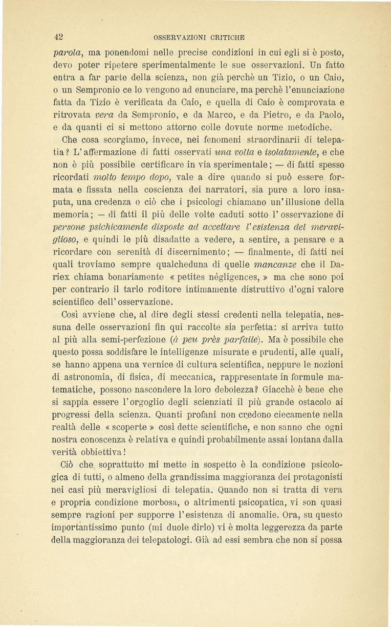 I fenomeni telepatici e le allucinazioni veridiche : osservazioni critiche sul neo-misticismo psicologico