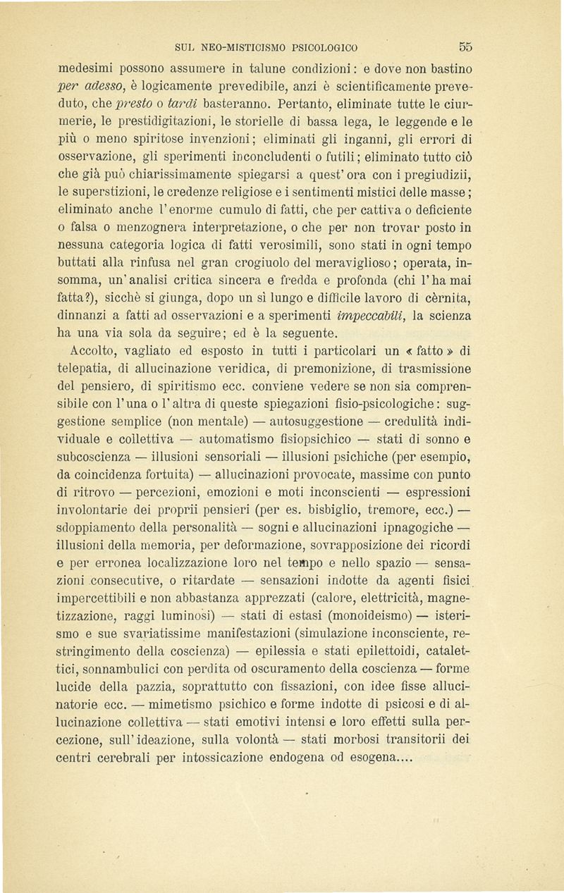 I fenomeni telepatici e le allucinazioni veridiche : osservazioni critiche sul neo-misticismo psicologico