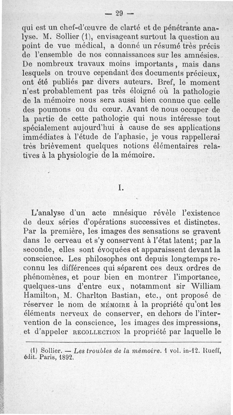 L'Aphasie amnésique et ses variétés cliniques, leçons faites à l'hôpital St-André de Bordeaux par le Pr A. Pitres, et recueillies par J. Abadie,...