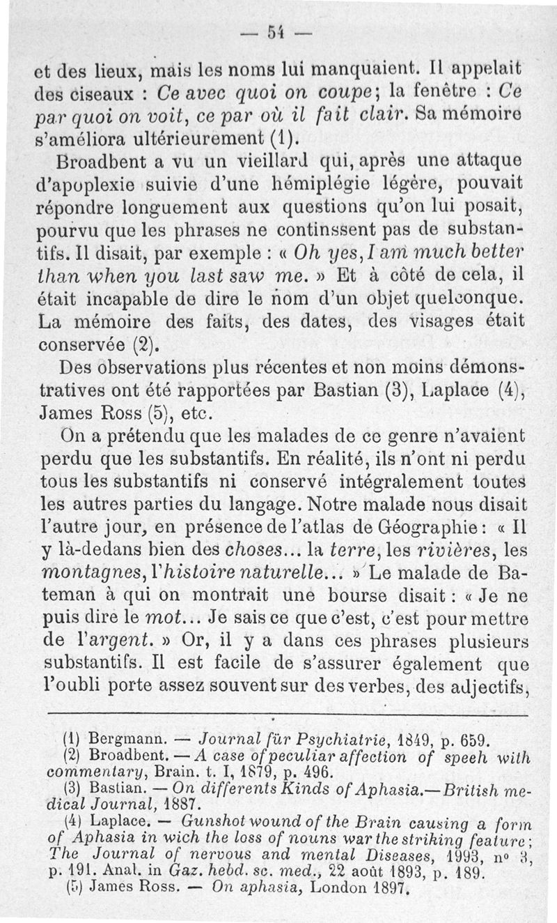 L'Aphasie amnésique et ses variétés cliniques, leçons faites à l'hôpital St-André de Bordeaux par le Pr A. Pitres, et recueillies par J. Abadie,...