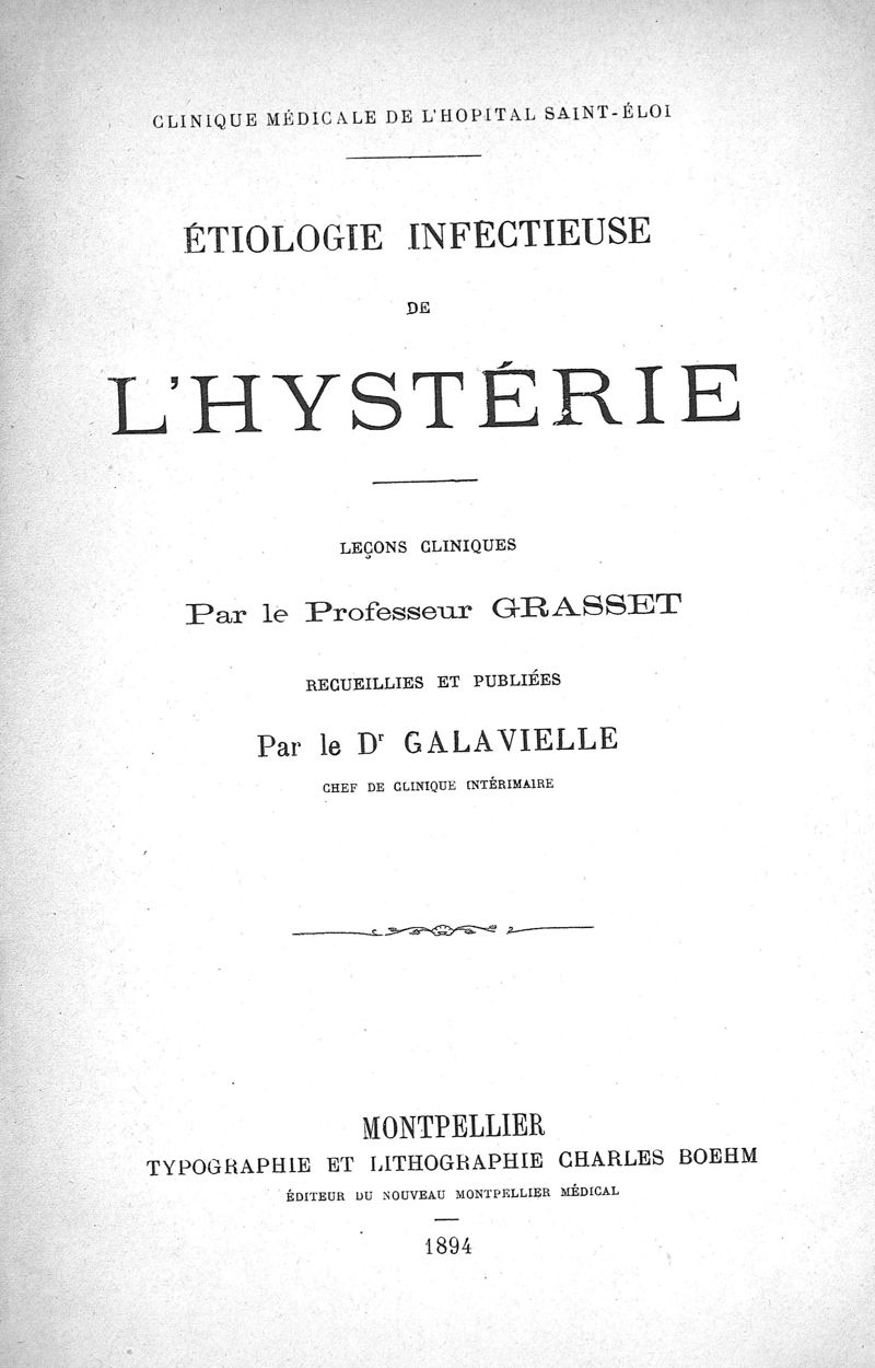 Etiologie infectieuse de l'hystérie ; leçons cliniques