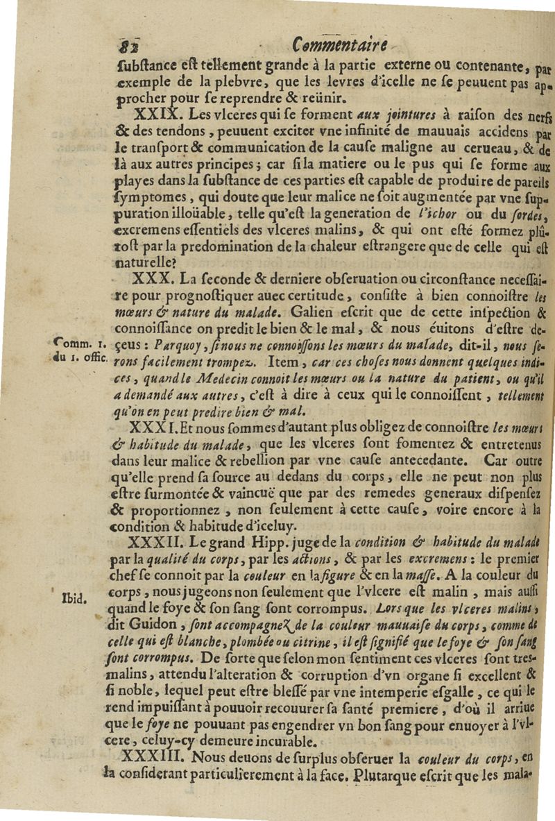 Les commentaires d'Antoine Lambert natif du LVC, me chirurgien à Marseille, divisez en cinq parties dont les matieres seront marquées à la page suivante