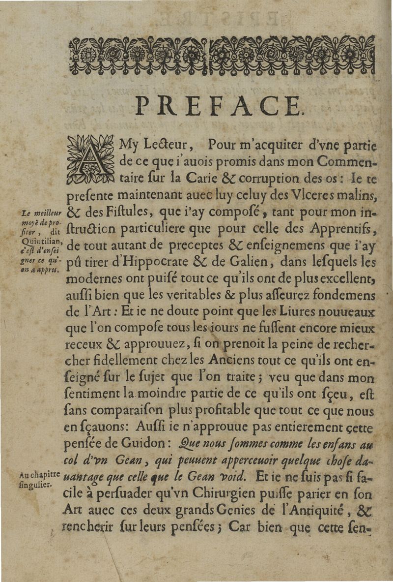 Les commentaires d'Antoine Lambert natif du LVC, me chirurgien à Marseille, divisez en cinq parties dont les matieres seront marquées à la page suivante
