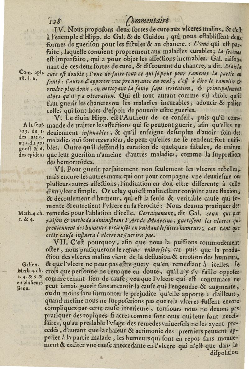 Les commentaires d'Antoine Lambert natif du LVC, me chirurgien à Marseille, divisez en cinq parties dont les matieres seront marquées à la page suivante
