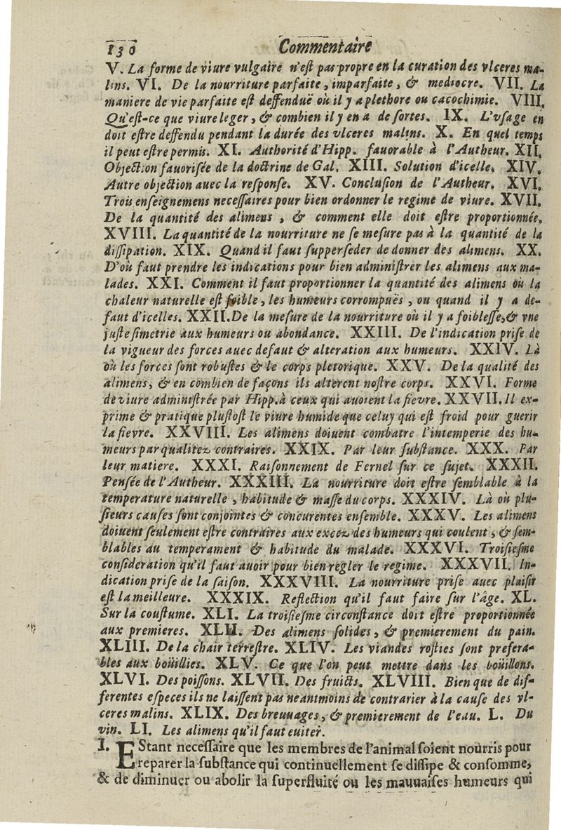 Les commentaires d'Antoine Lambert natif du LVC, me chirurgien à Marseille, divisez en cinq parties dont les matieres seront marquées à la page suivante