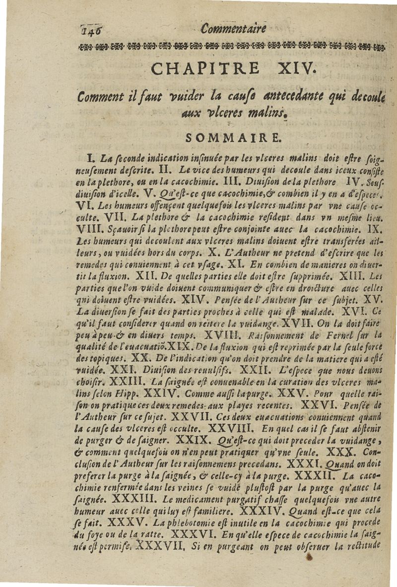 Les commentaires d'Antoine Lambert natif du LVC, me chirurgien à Marseille, divisez en cinq parties dont les matieres seront marquées à la page suivante