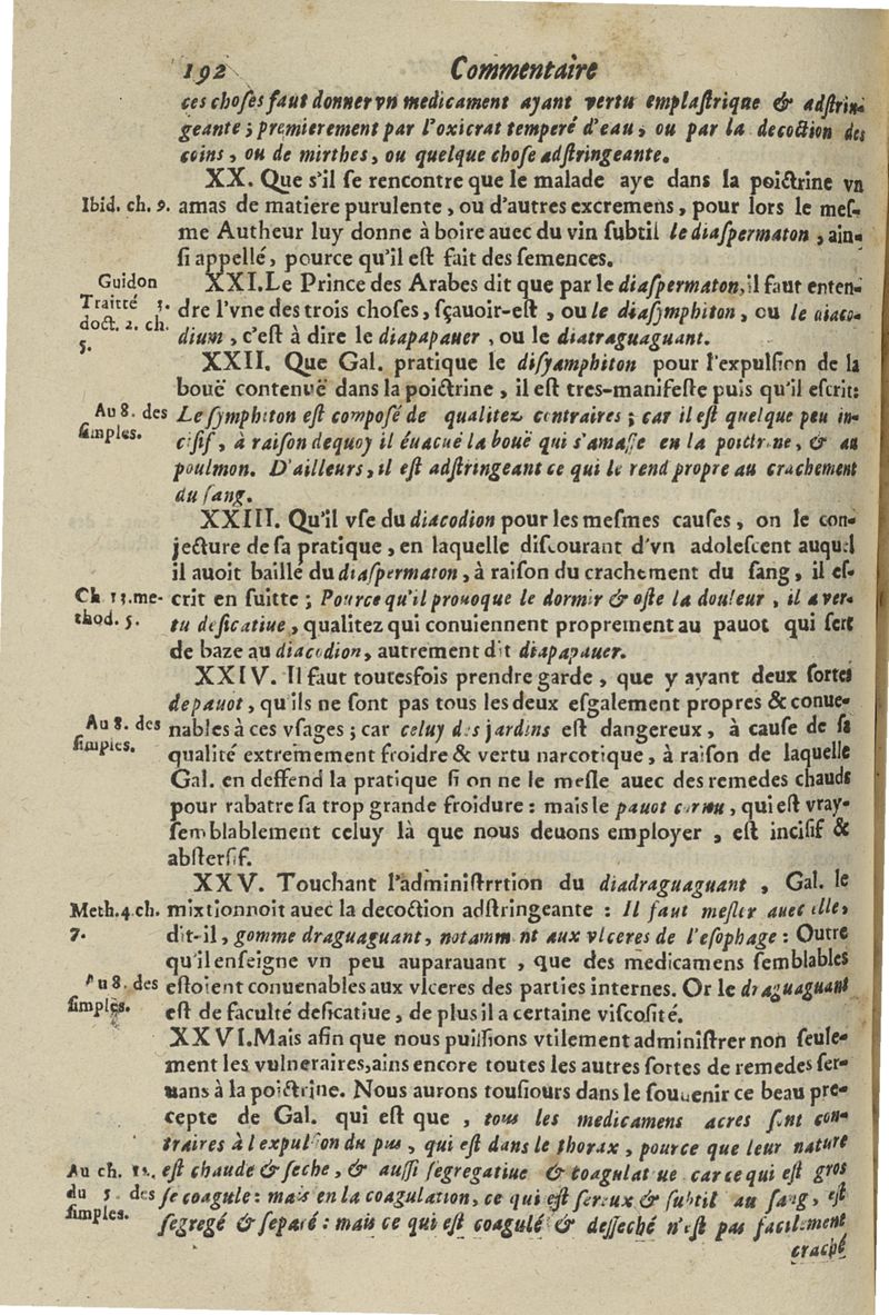 Les commentaires d'Antoine Lambert natif du LVC, me chirurgien à Marseille, divisez en cinq parties dont les matieres seront marquées à la page suivante