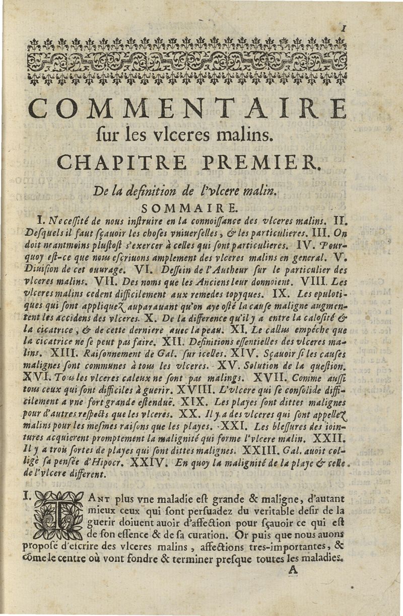 Les commentaires d'Antoine Lambert natif du LVC, me chirurgien à Marseille, divisez en cinq parties dont les matieres seront marquées à la page suivante