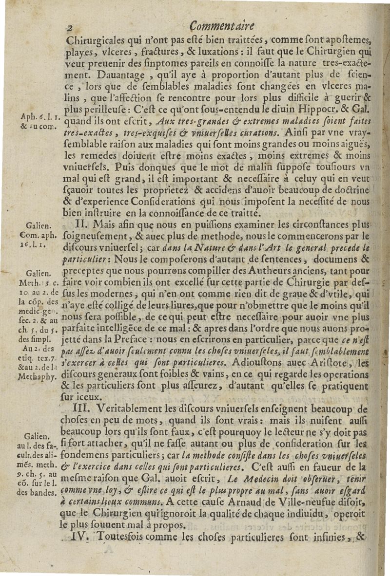 Les commentaires d'Antoine Lambert natif du LVC, me chirurgien à Marseille, divisez en cinq parties dont les matieres seront marquées à la page suivante