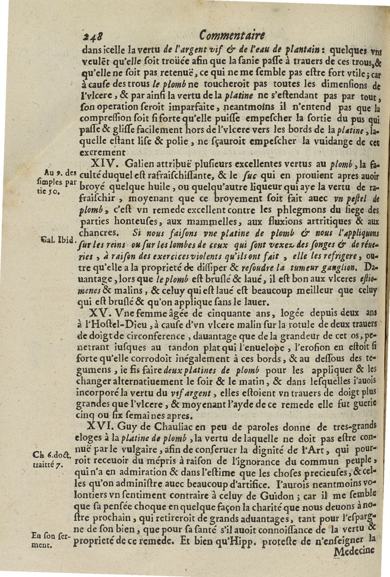 Les commentaires d'Antoine Lambert natif du LVC, me chirurgien à Marseille, divisez en cinq parties dont les matieres seront marquées à la page suivante