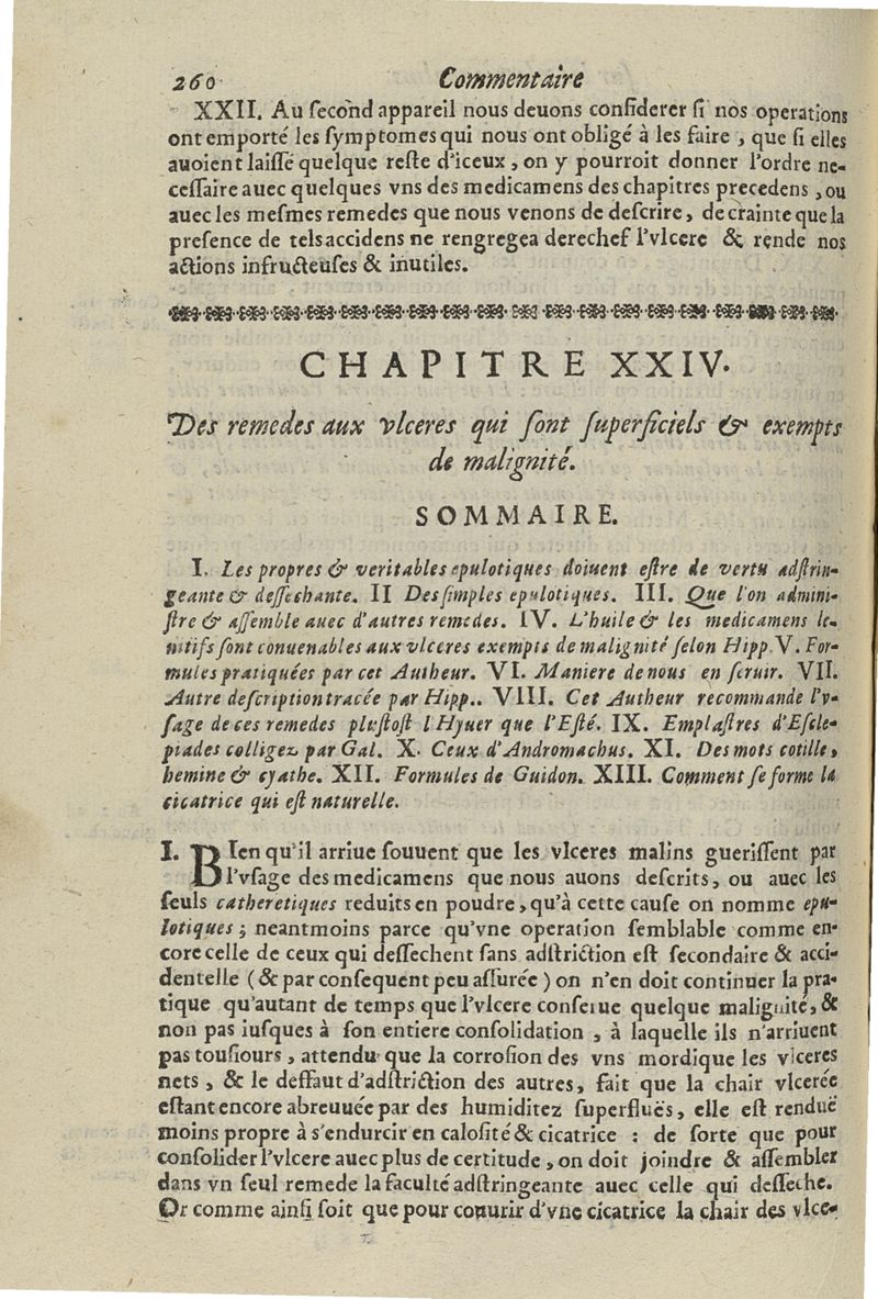 Les commentaires d'Antoine Lambert natif du LVC, me chirurgien à Marseille, divisez en cinq parties dont les matieres seront marquées à la page suivante