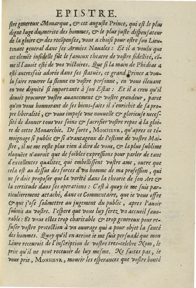Les commentaires d'Antoine Lambert natif du LVC, me chirurgien à Marseille, divisez en cinq parties dont les matieres seront marquées à la page suivante