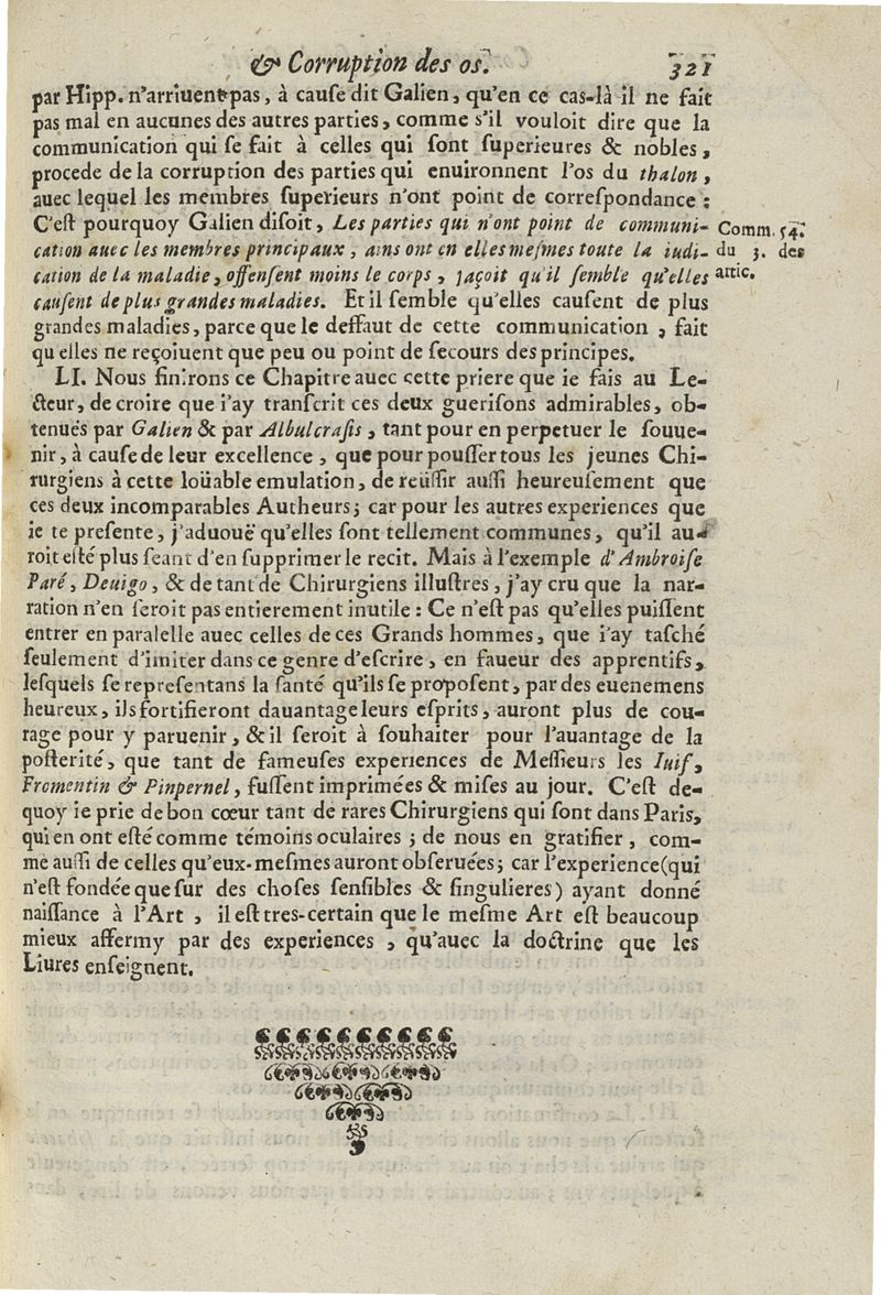 Les commentaires d'Antoine Lambert natif du LVC, me chirurgien à Marseille, divisez en cinq parties dont les matieres seront marquées à la page suivante