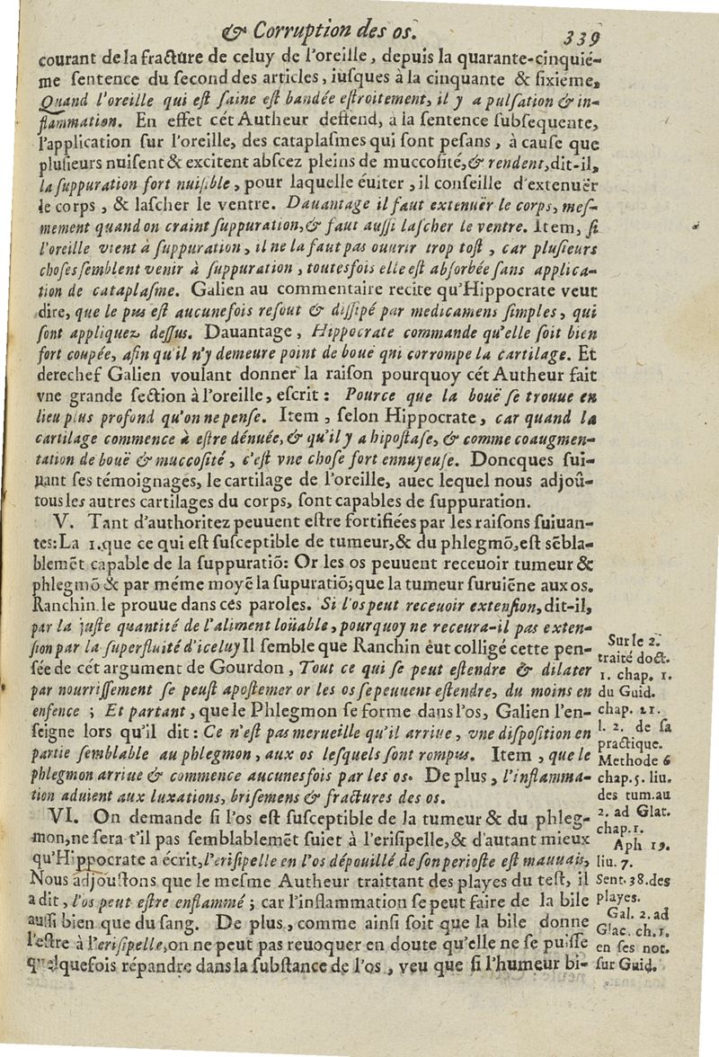 Les commentaires d'Antoine Lambert natif du LVC, me chirurgien à Marseille, divisez en cinq parties dont les matieres seront marquées à la page suivante