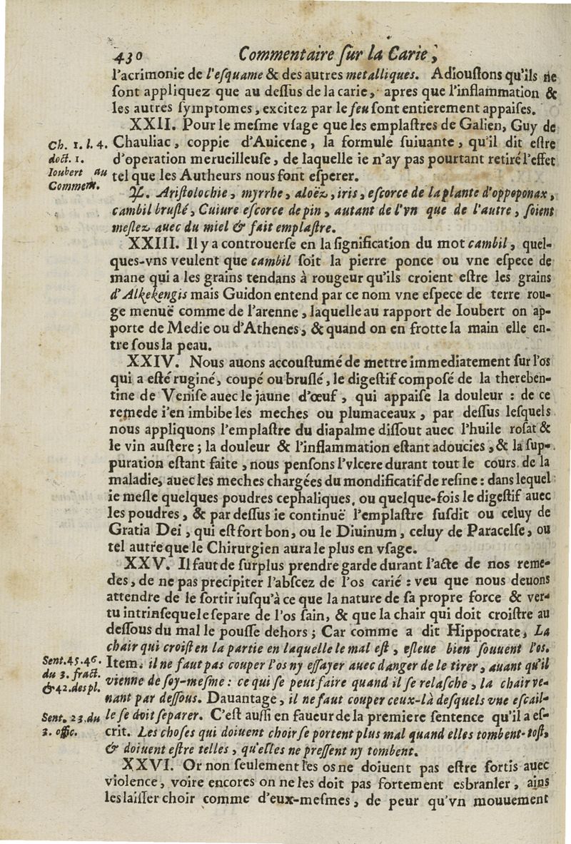 Les commentaires d'Antoine Lambert natif du LVC, me chirurgien à Marseille, divisez en cinq parties dont les matieres seront marquées à la page suivante
