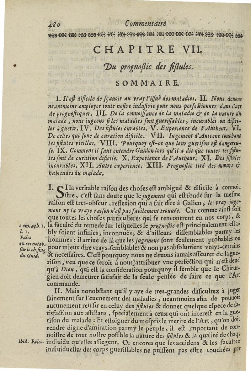 Les commentaires d'Antoine Lambert natif du LVC, me chirurgien à Marseille, divisez en cinq parties dont les matieres seront marquées à la page suivante