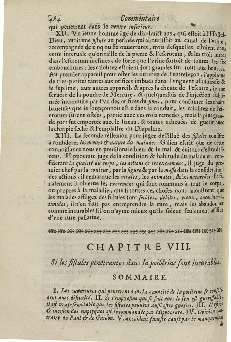 Les commentaires d'Antoine Lambert natif du LVC, me chirurgien à Marseille, divisez en cinq parties dont les matieres seront marquées à la page suivante
