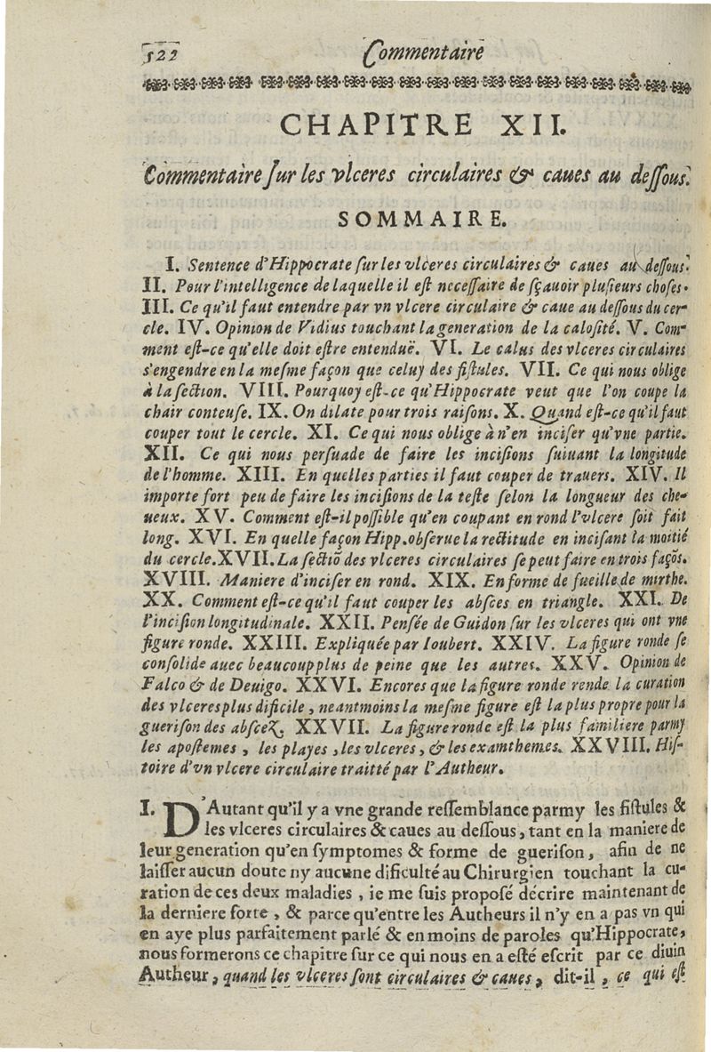 Les commentaires d'Antoine Lambert natif du LVC, me chirurgien à Marseille, divisez en cinq parties dont les matieres seront marquées à la page suivante