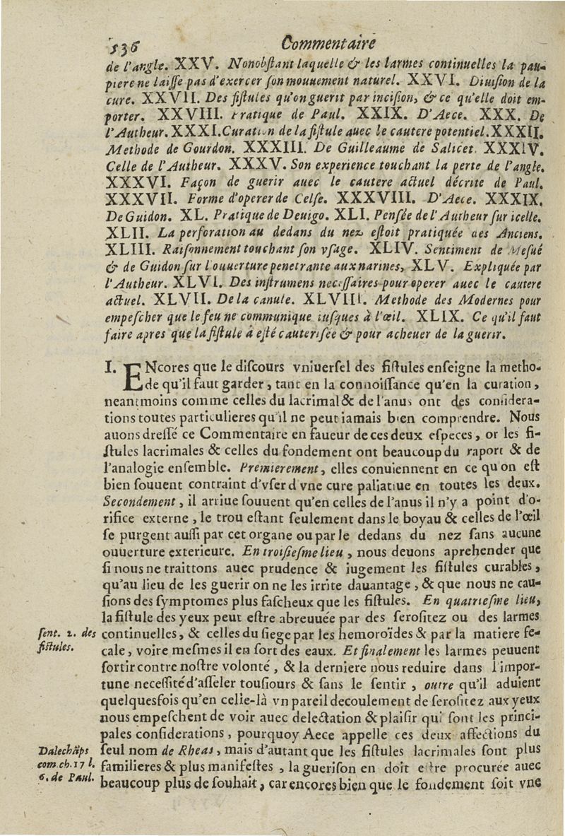 Les commentaires d'Antoine Lambert natif du LVC, me chirurgien à Marseille, divisez en cinq parties dont les matieres seront marquées à la page suivante