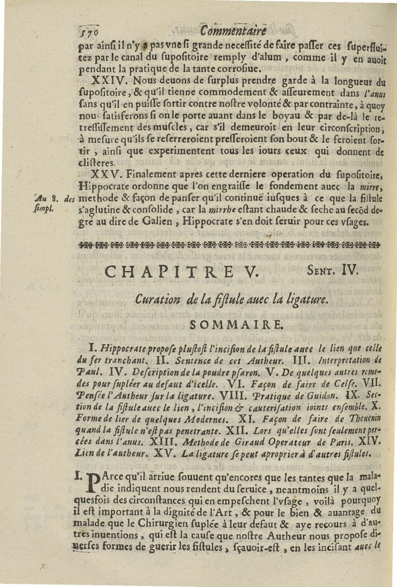 Les commentaires d'Antoine Lambert natif du LVC, me chirurgien à Marseille, divisez en cinq parties dont les matieres seront marquées à la page suivante