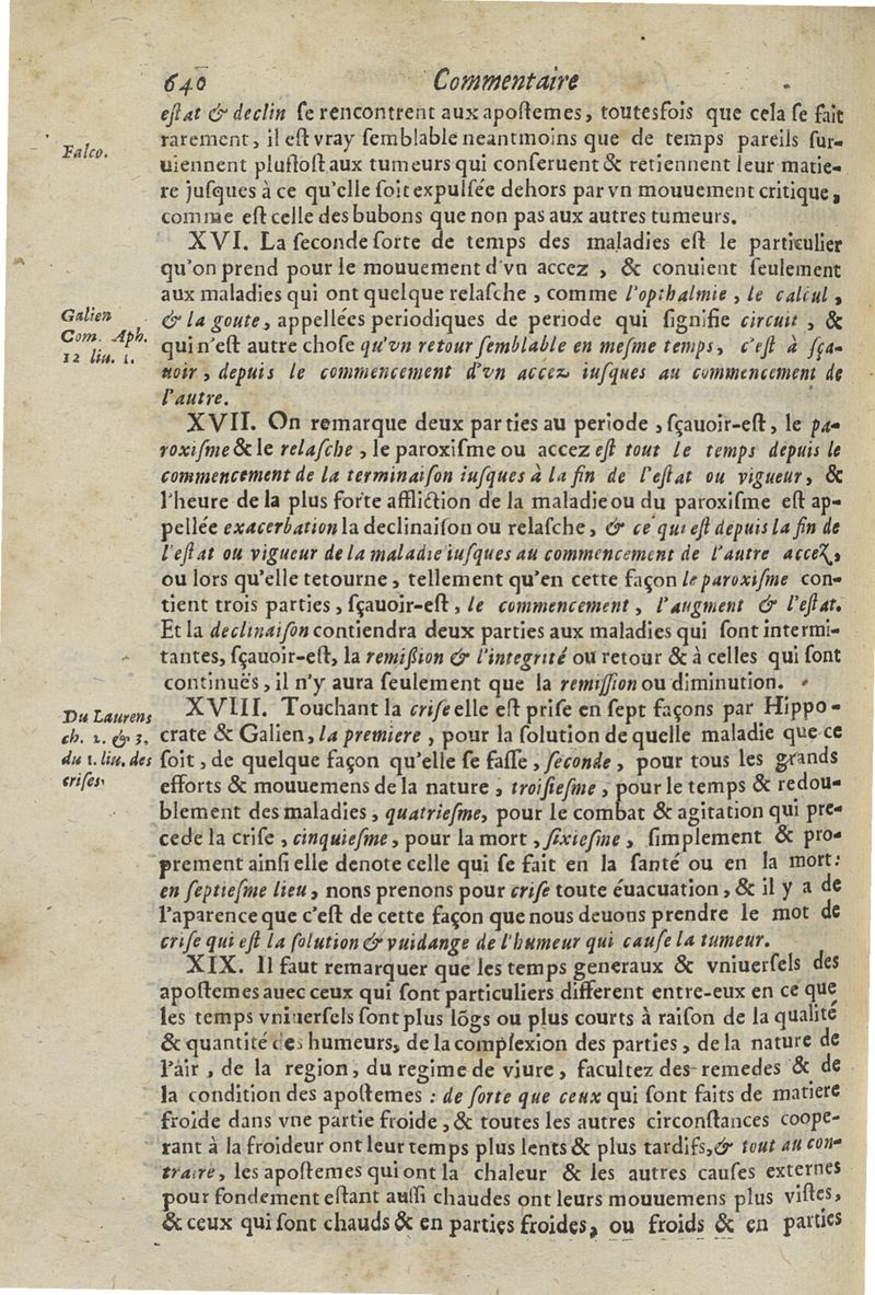 Les commentaires d'Antoine Lambert natif du LVC, me chirurgien à Marseille, divisez en cinq parties dont les matieres seront marquées à la page suivante
