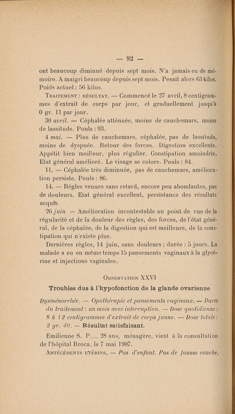 Effets thérapeutiques du corps jaune de l'ovaire