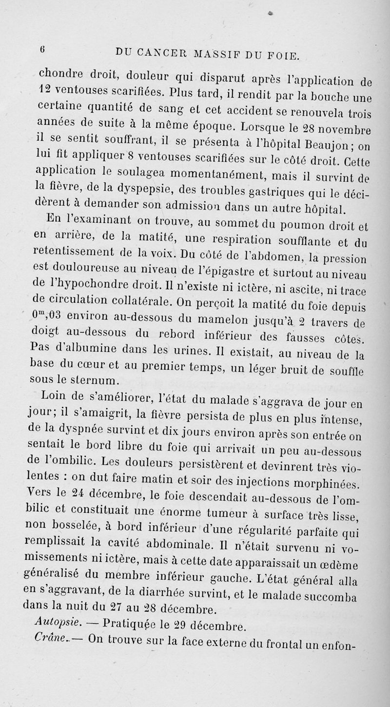Du cancer massif du foie