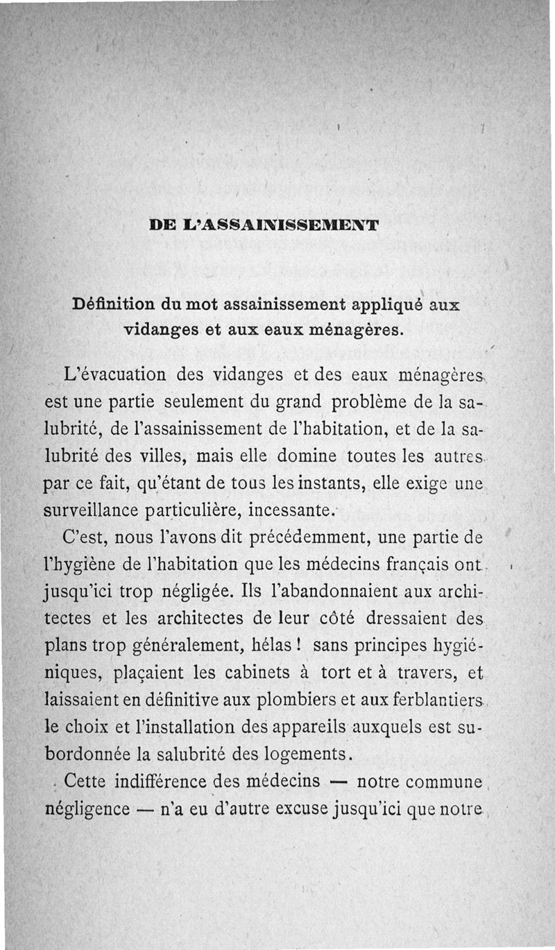Les vidanges et les eaux ménagères : au point de vue de l'assainissement des habitations privées