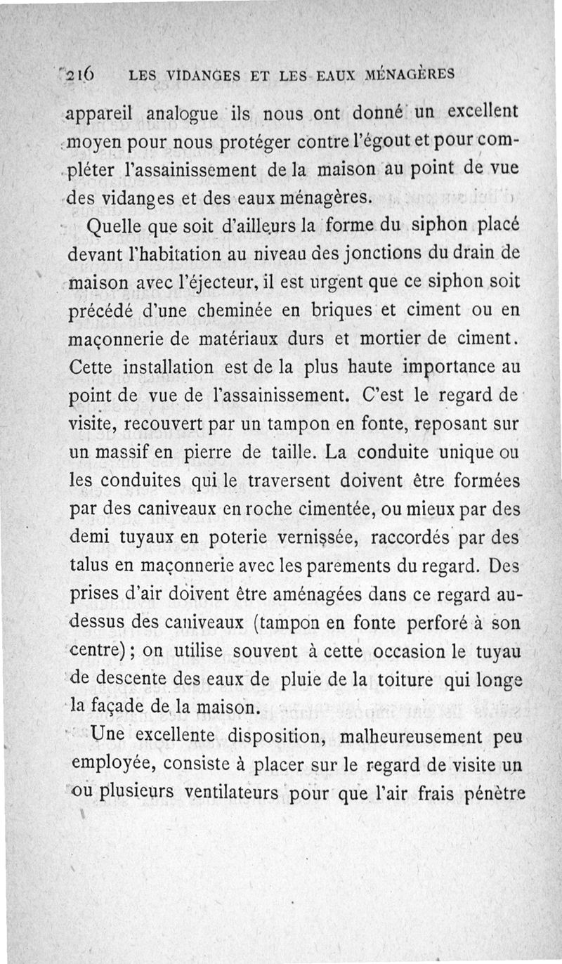 Les vidanges et les eaux ménagères : au point de vue de l'assainissement des habitations privées