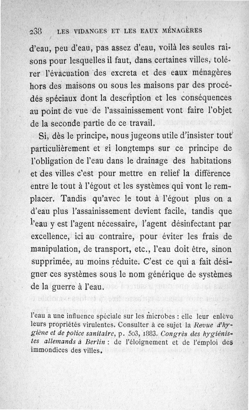 Les vidanges et les eaux ménagères : au point de vue de l'assainissement des habitations privées