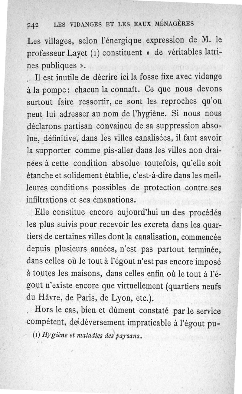 Les vidanges et les eaux ménagères : au point de vue de l'assainissement des habitations privées