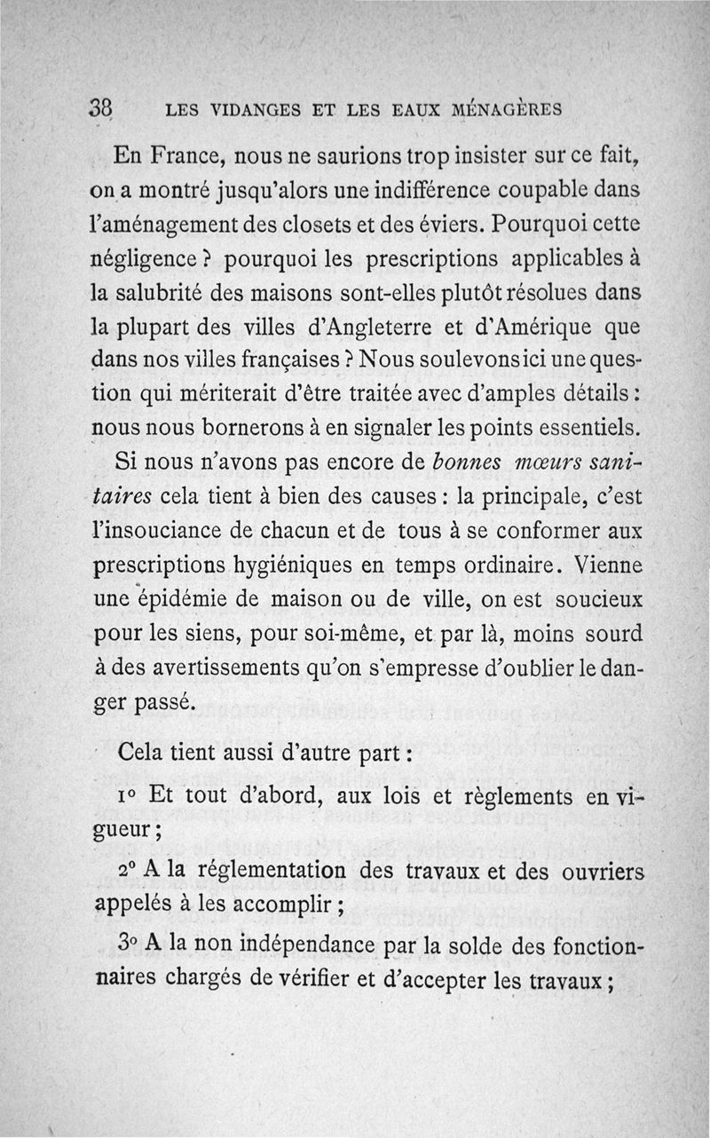 Les vidanges et les eaux ménagères : au point de vue de l'assainissement des habitations privées