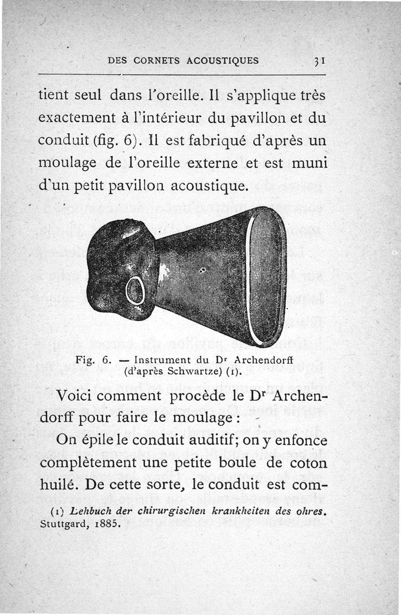 Des cornets acoustiques et de leur emploi dans le traitement médical de la surdi-mutité