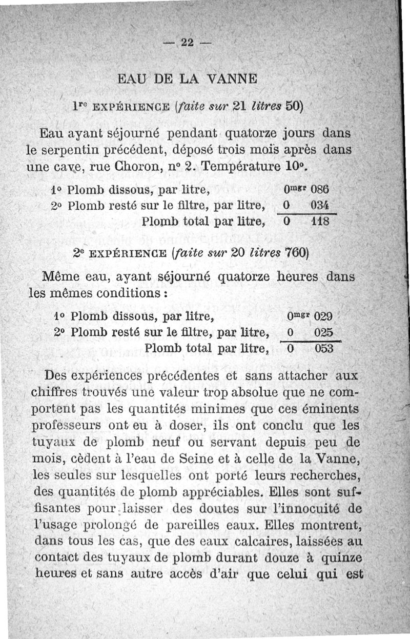 Etude sur les eaux potables et le plomb