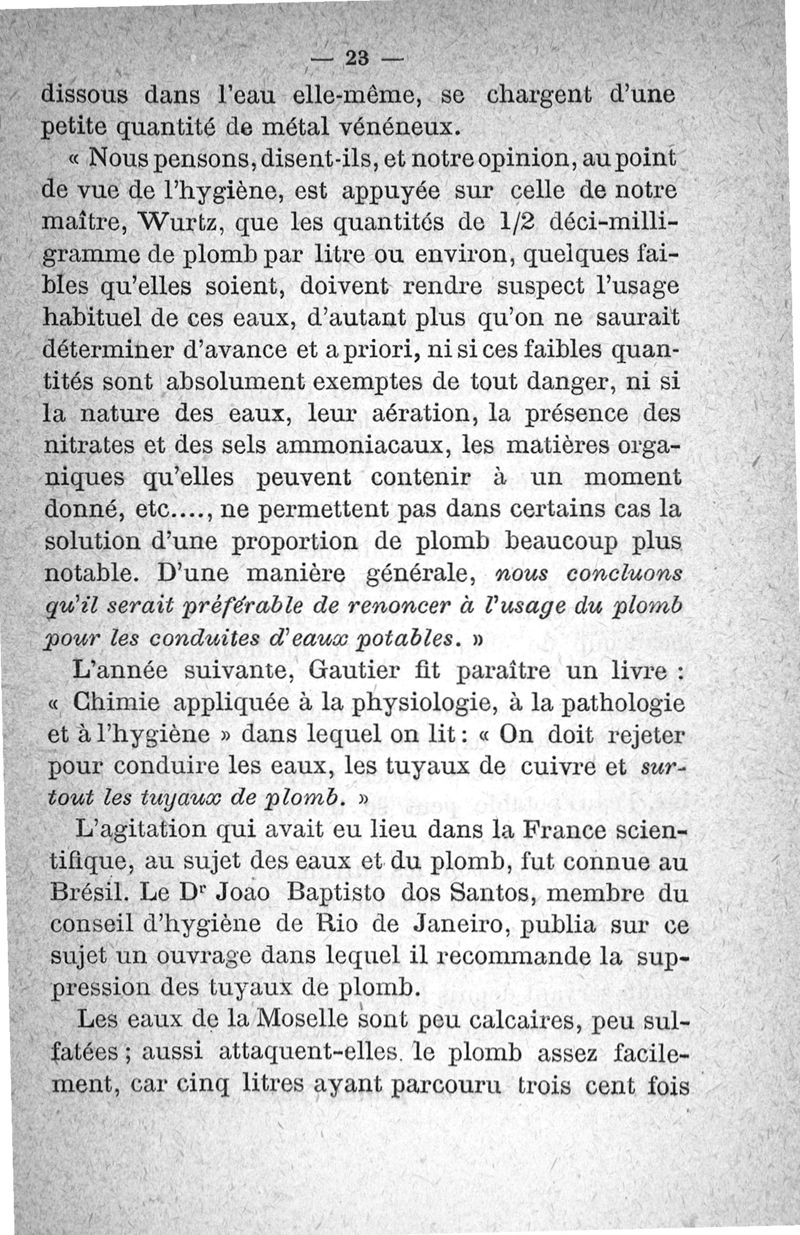 Etude sur les eaux potables et le plomb