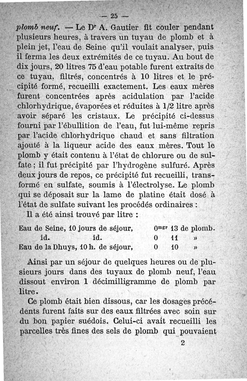 Etude sur les eaux potables et le plomb