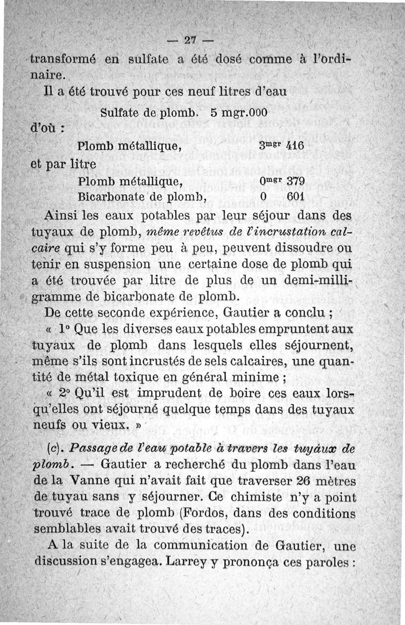 Etude sur les eaux potables et le plomb