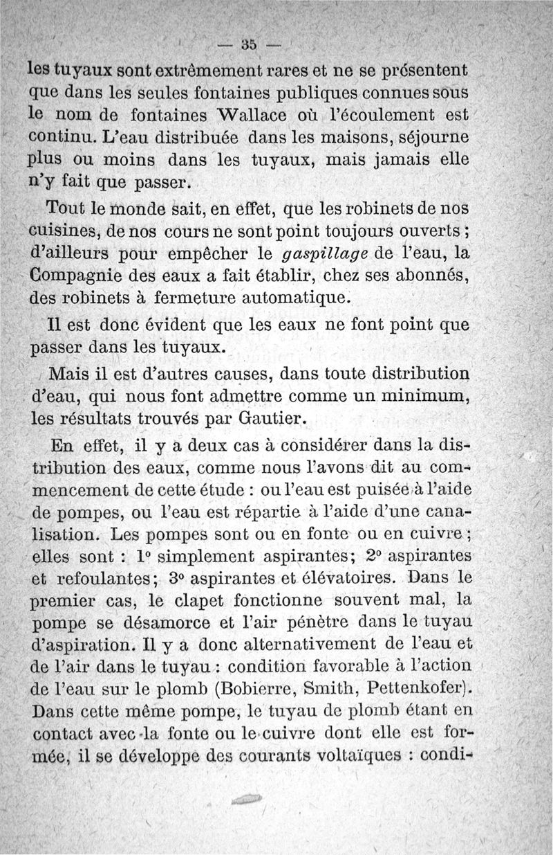 Etude sur les eaux potables et le plomb